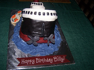 Sinking Titanic ship with coordinating life preserver cookies.